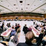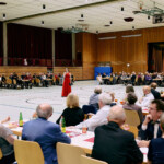 Schon ab 18 Uhr füllte sich die Halle, denn zu diesem frühen Zeitpunkt öffnete bereits das reichhaltige Buffet. Die Gäste ließen sich nicht zweimal bitten: In elegantem Ambiente wurde geschlemmt, gelacht und voller Vorfreude auf den Abend angestoßen.