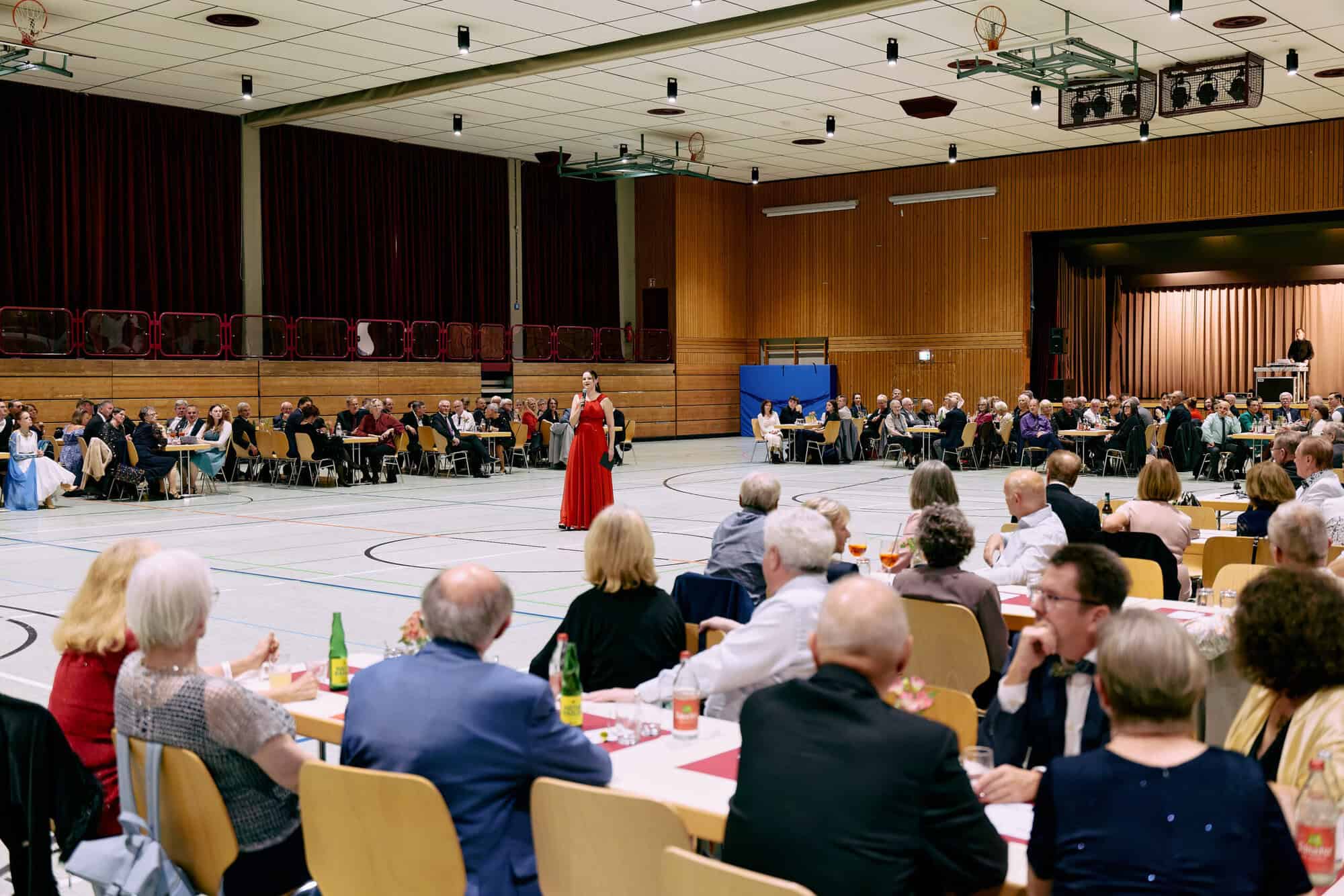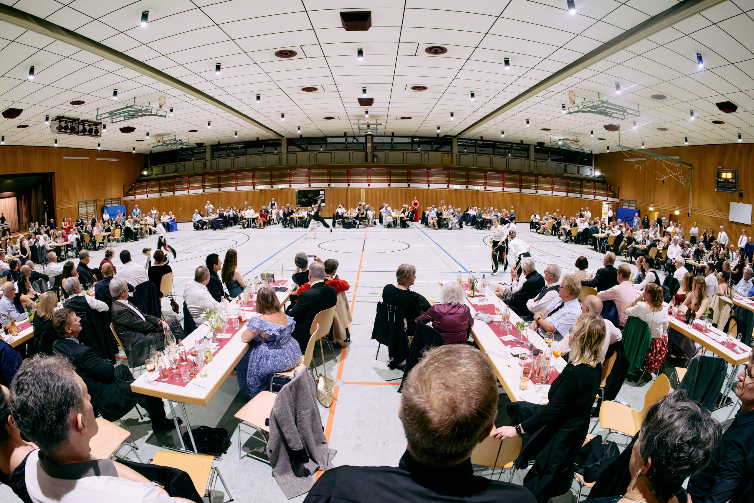 Schon ab 18 Uhr füllte sich die Halle, denn zu diesem frühen Zeitpunkt öffnete bereits das reichhaltige Buffet. Die Gäste ließen sich nicht zweimal bitten: In elegantem Ambiente wurde geschlemmt, gelacht und voller Vorfreude auf den Abend angestoßen.