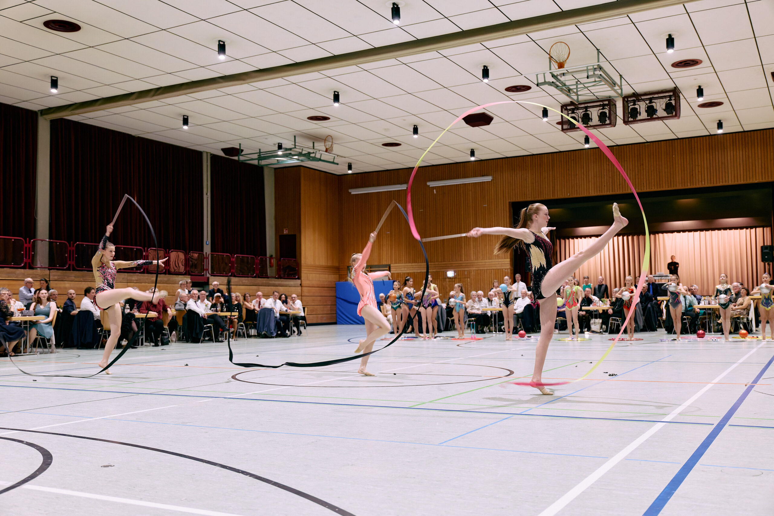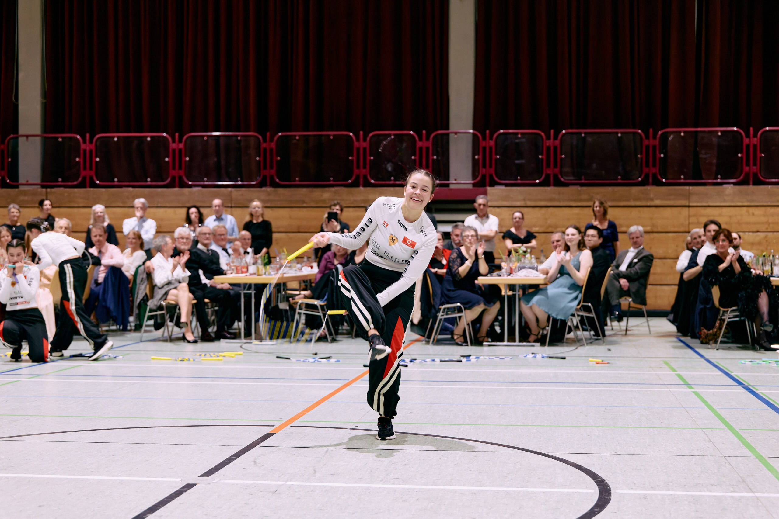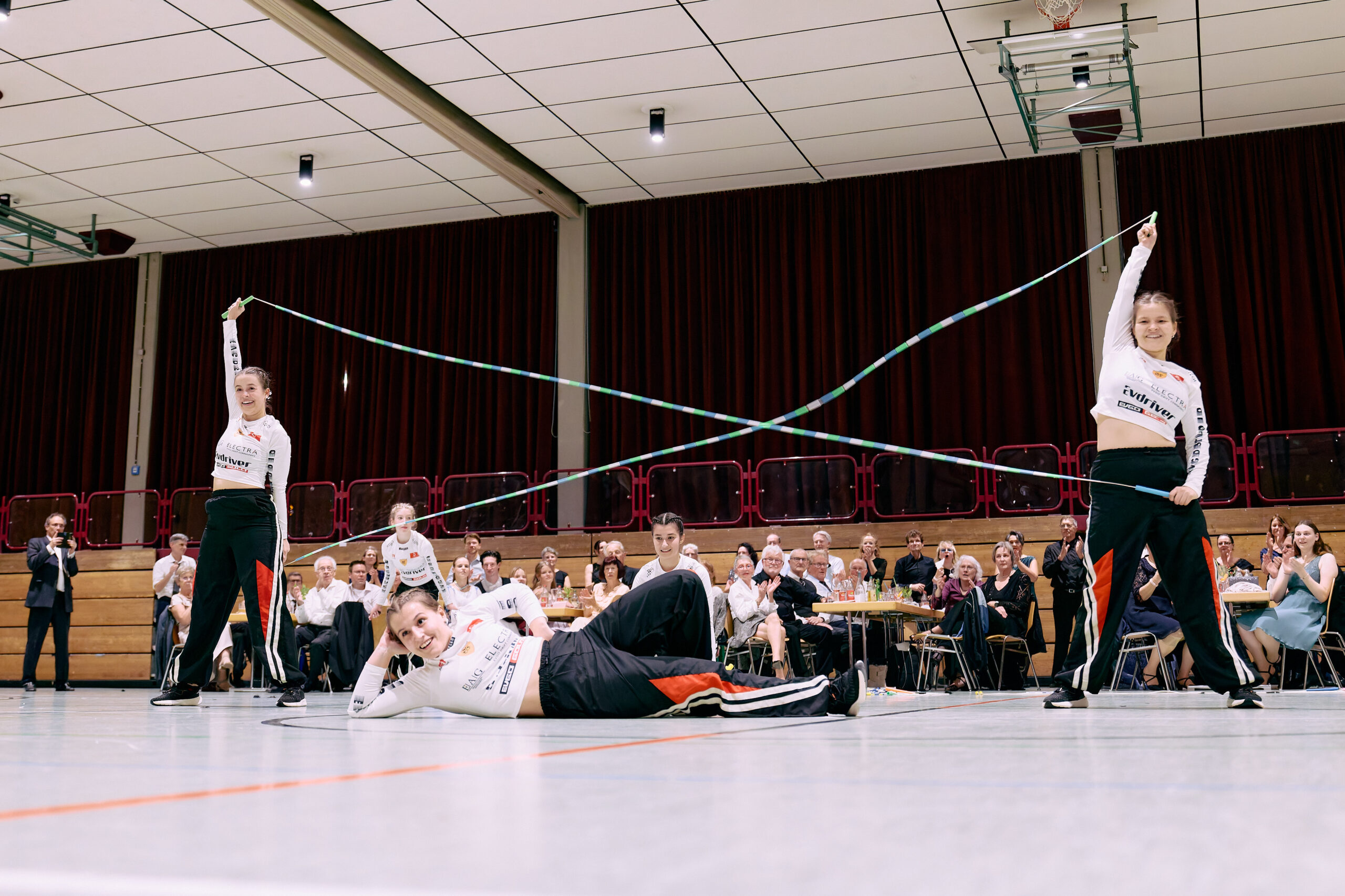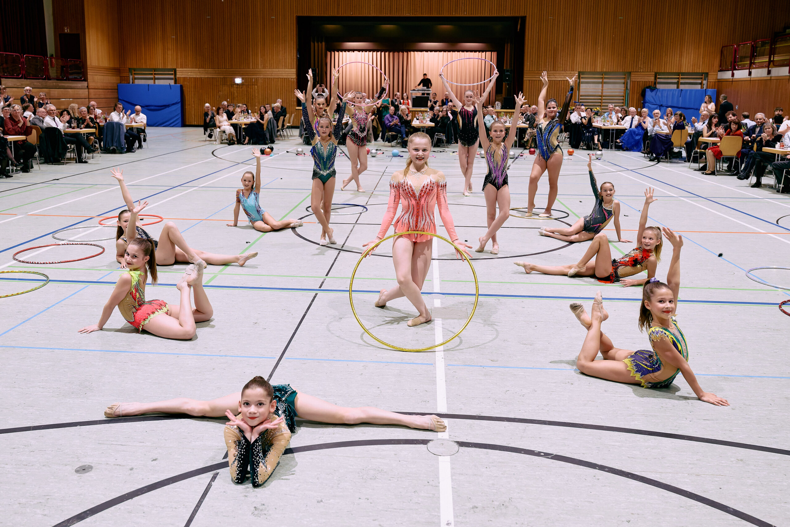 Den Auftakt der Showeinlagen machten die talentierten jungen Sportlerinnen der Rhythmischen Sportgymnastik aus dem TSV Graben-Neudorf. Mit Reifen, Keulen, Bällen und Bändern präsentierten sie eine ästhetische, präzise und zugleich mitreißende Darbietung, die das Publikum sofort in ihren Bann zog.