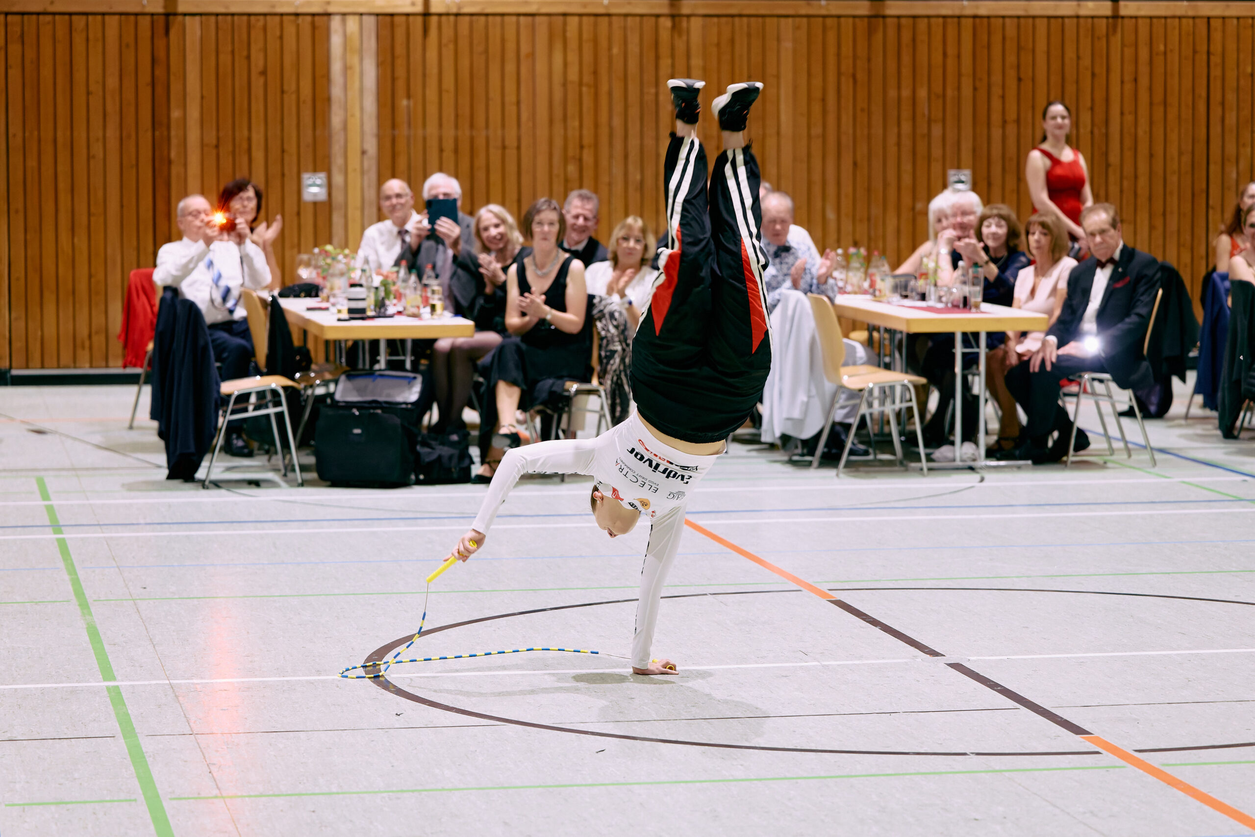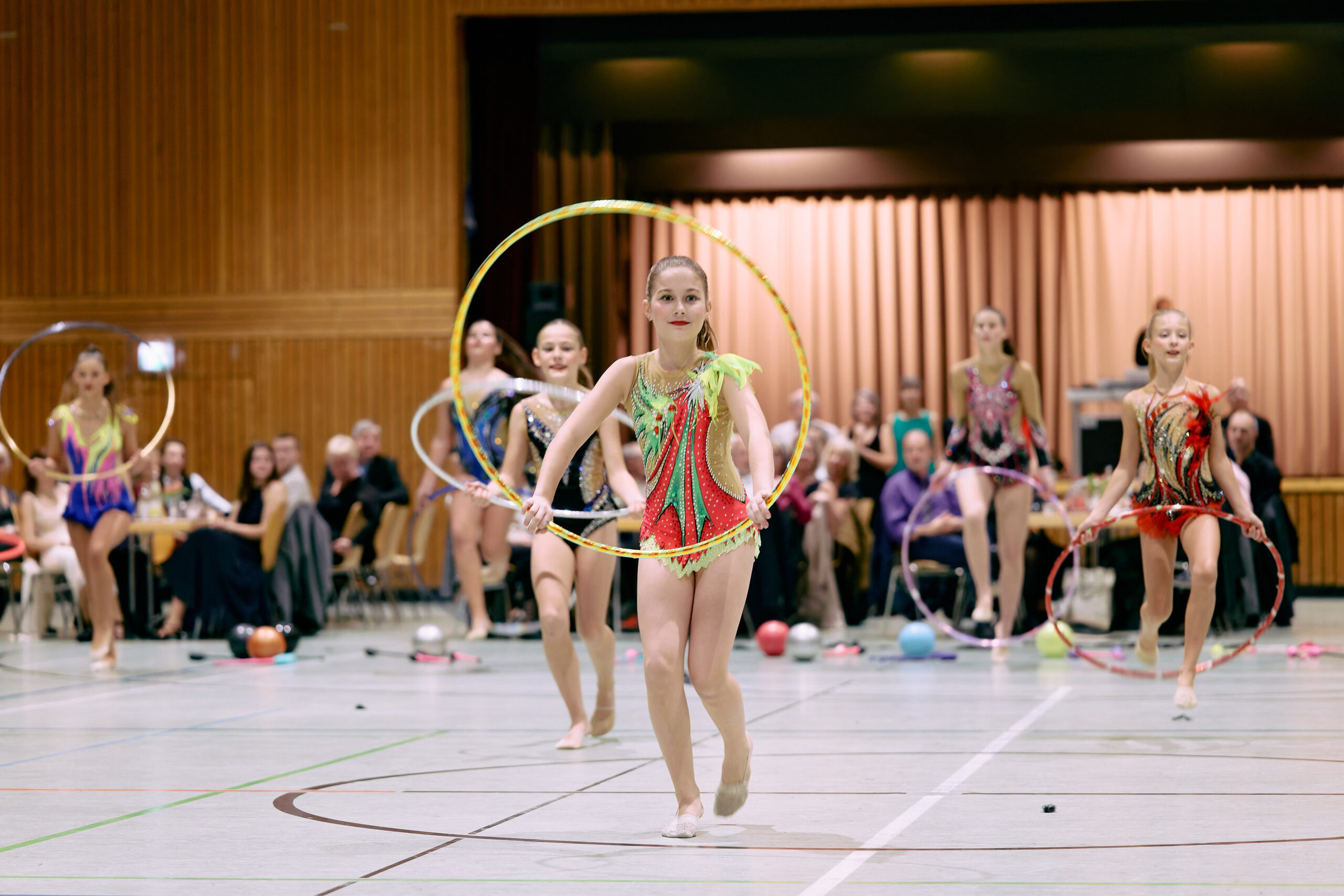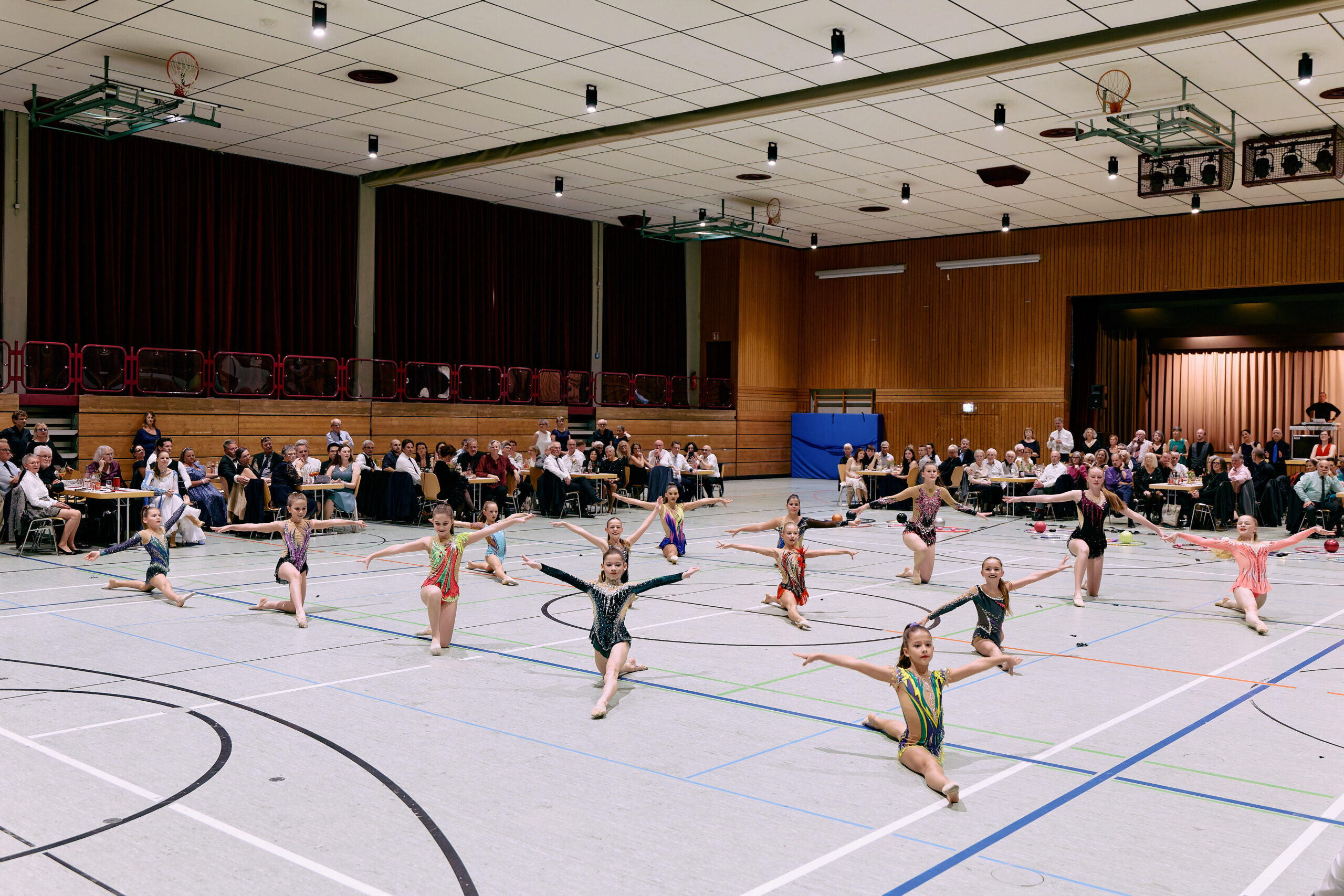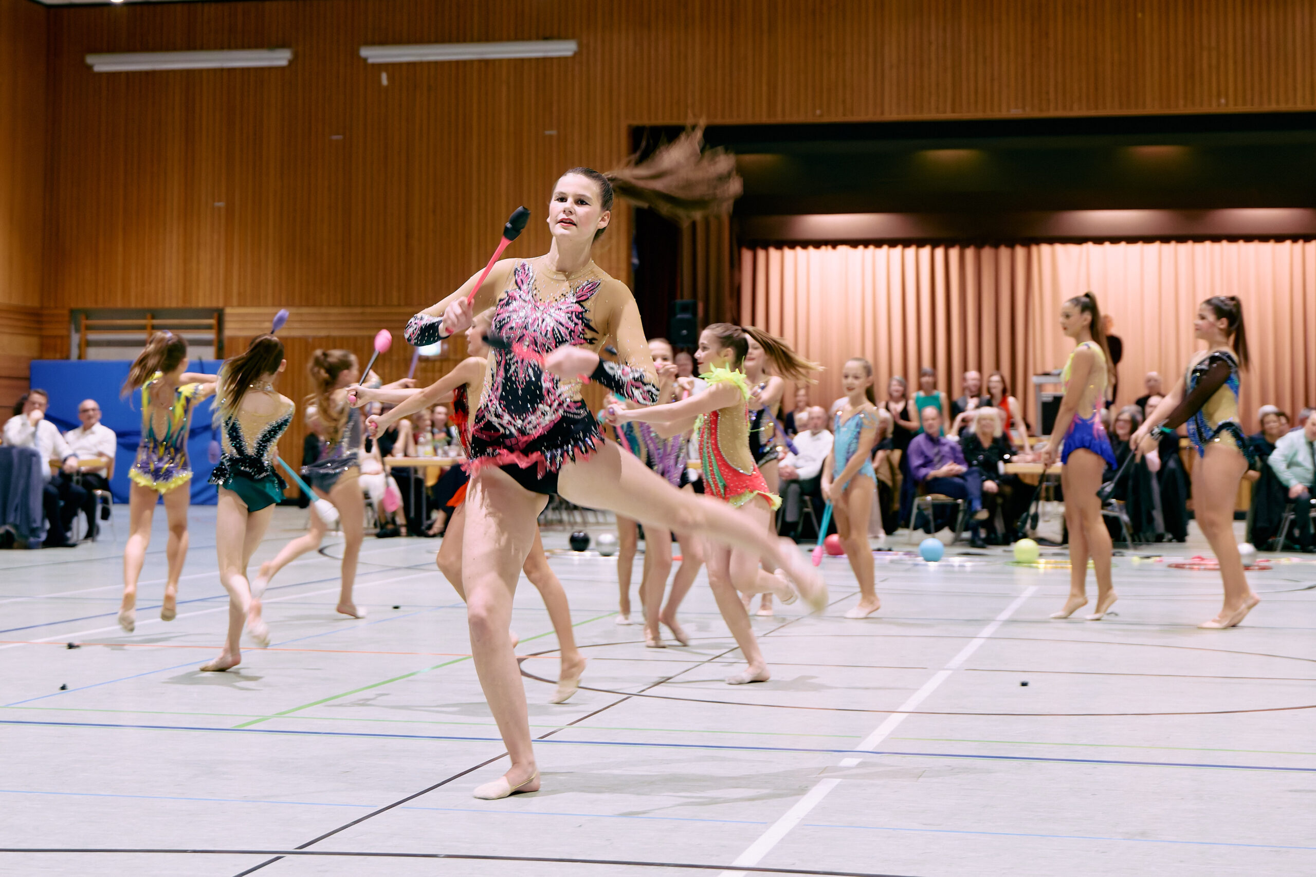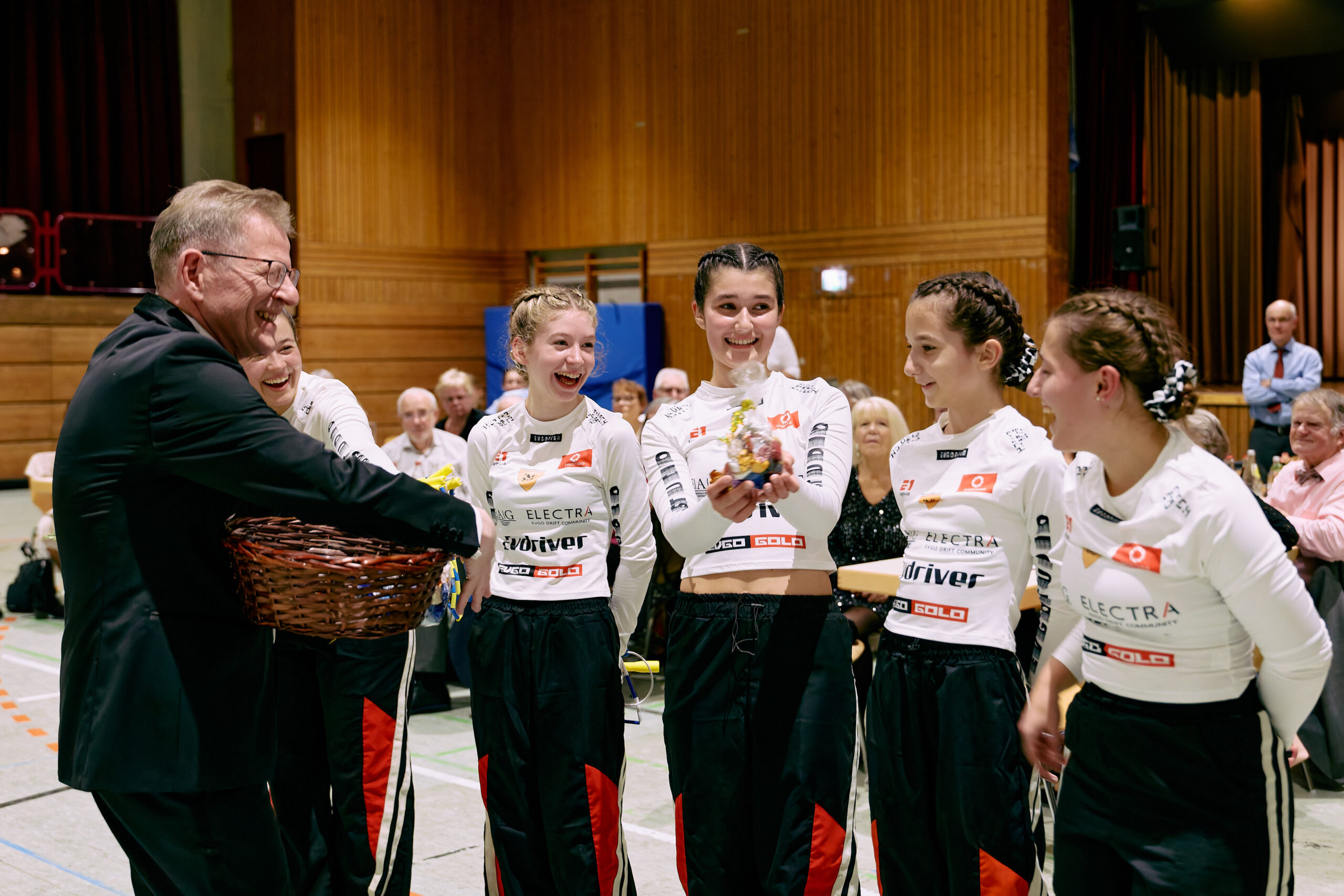 Den Auftakt der Showeinlagen machten die talentierten jungen Sportlerinnen der Rhythmischen Sportgymnastik aus dem TSV Graben-Neudorf. Mit Reifen, Keulen, Bällen und Bändern präsentierten sie eine ästhetische, präzise und zugleich mitreißende Darbietung, die das Publikum sofort in ihren Bann zog.