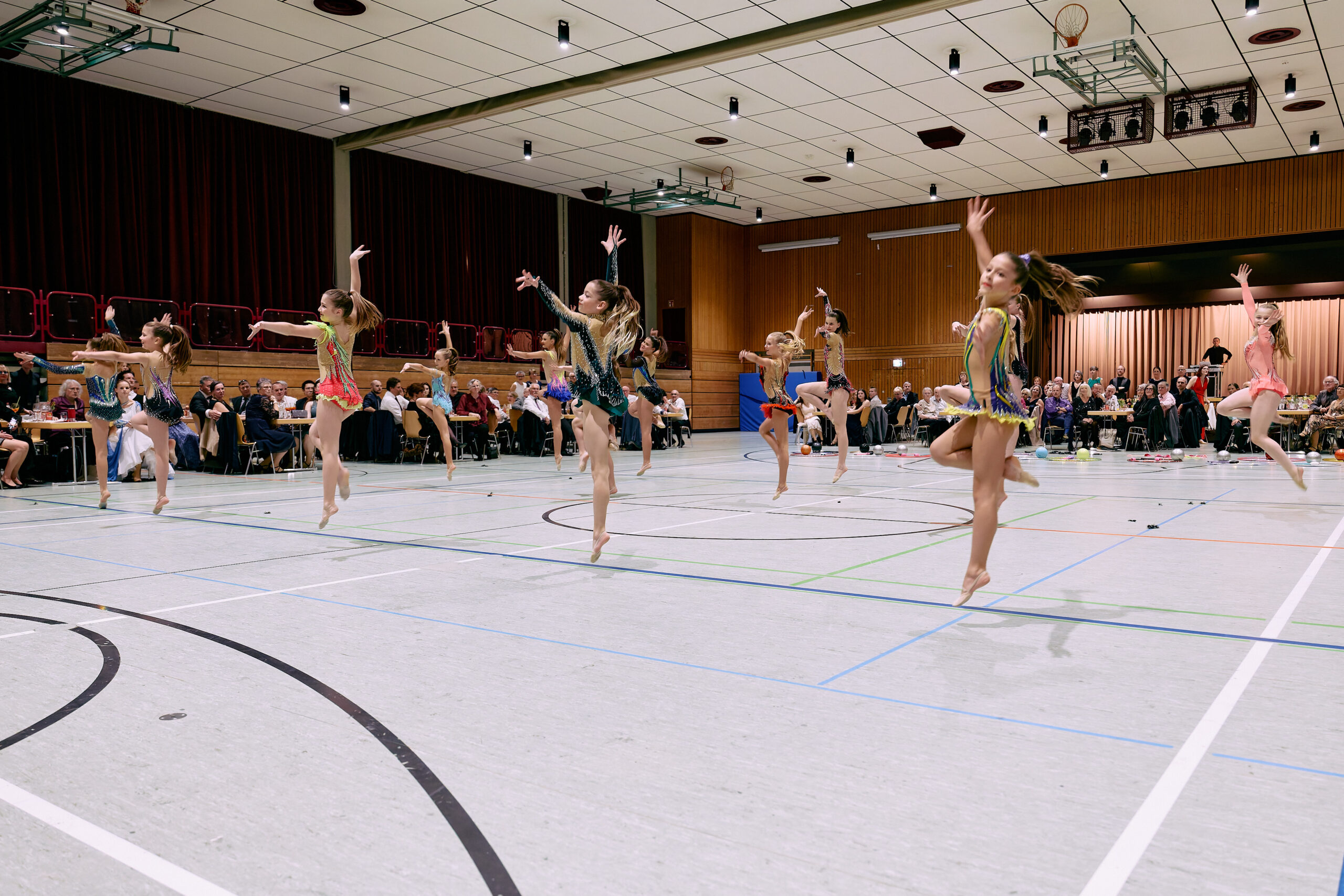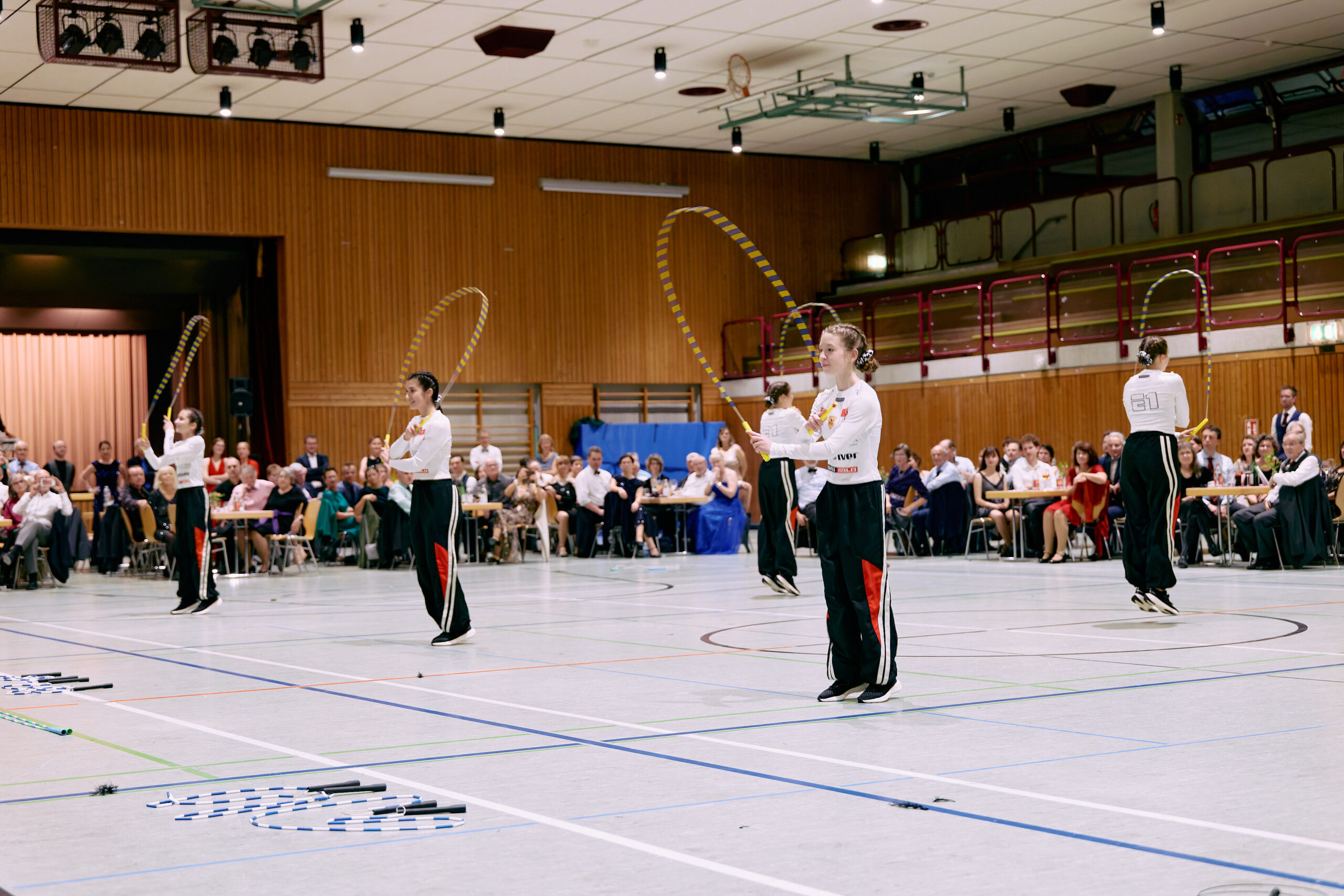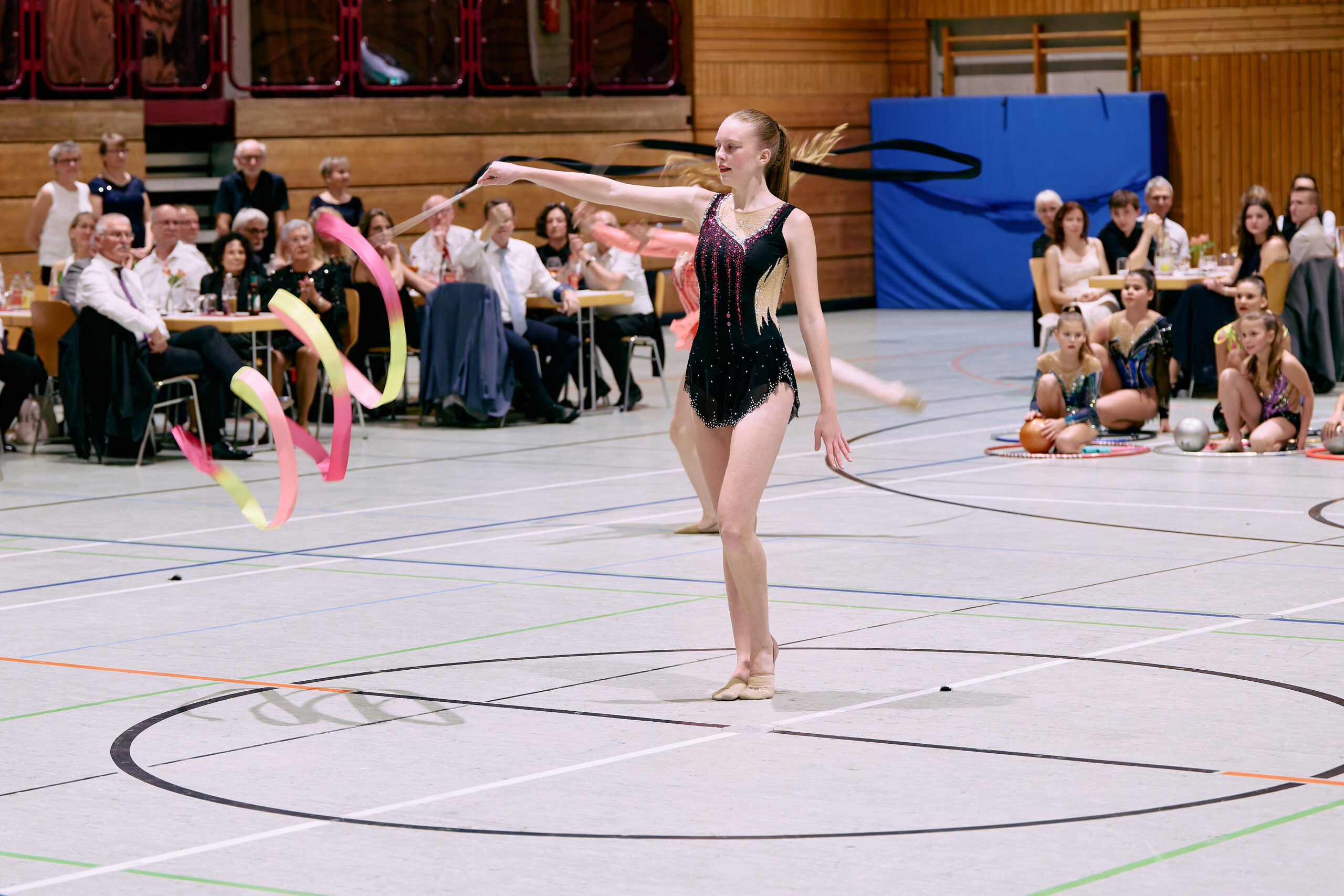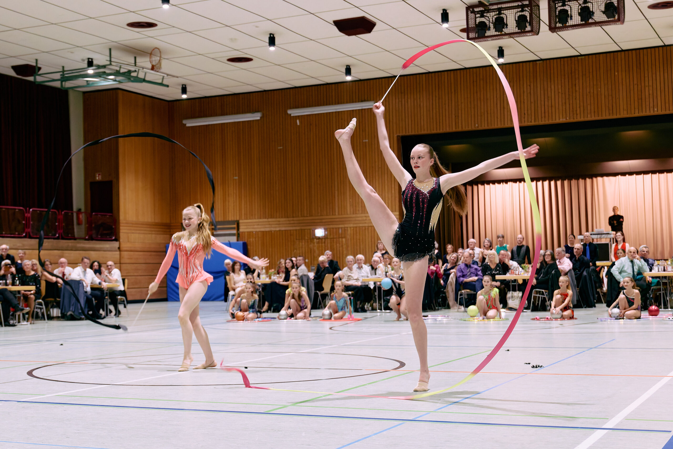Den Auftakt der Showeinlagen machten die talentierten jungen Sportlerinnen der Rhythmischen Sportgymnastik aus dem TSV Graben-Neudorf. Mit Reifen, Keulen, Bällen und Bändern präsentierten sie eine ästhetische, präzise und zugleich mitreißende Darbietung, die das Publikum sofort in ihren Bann zog.