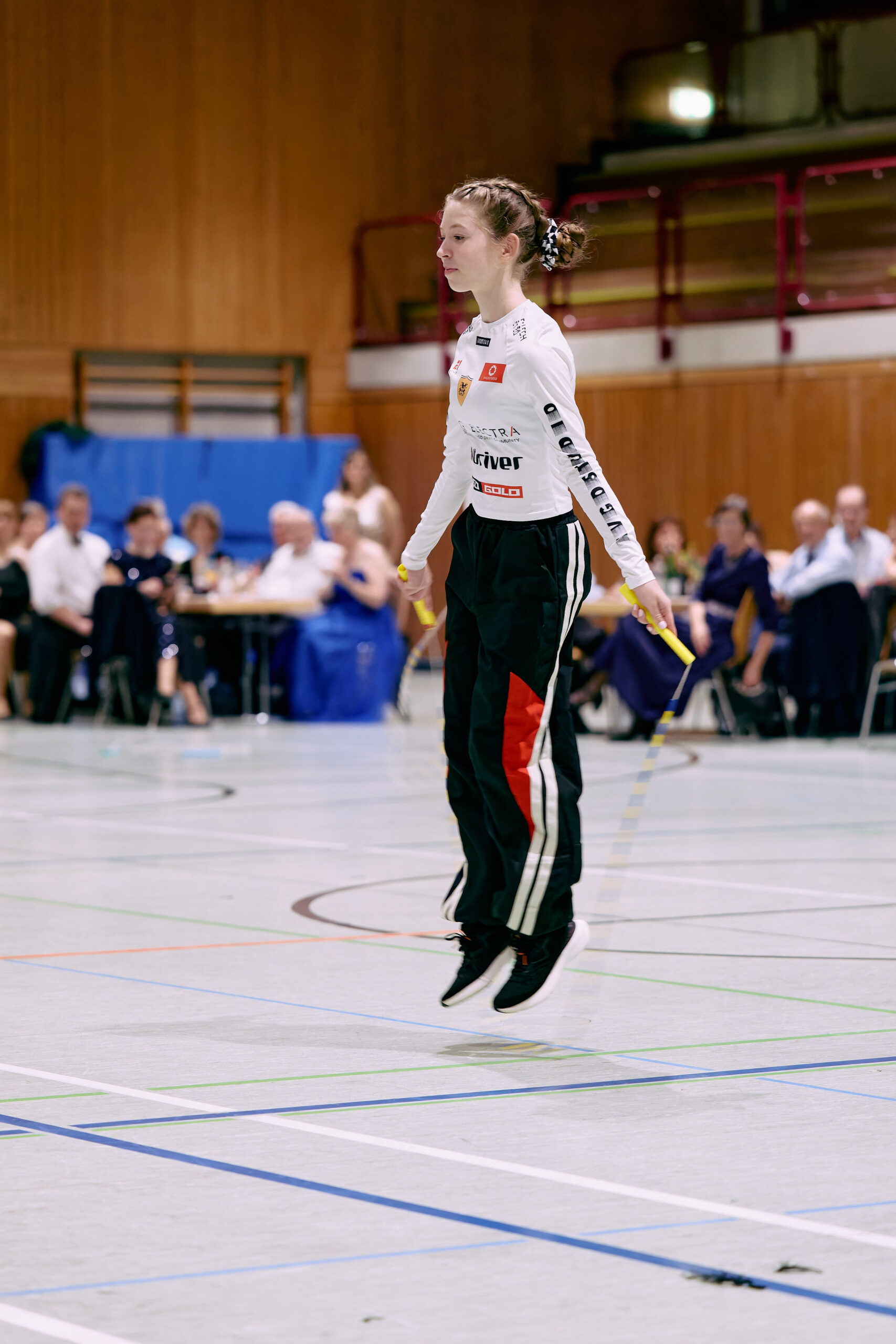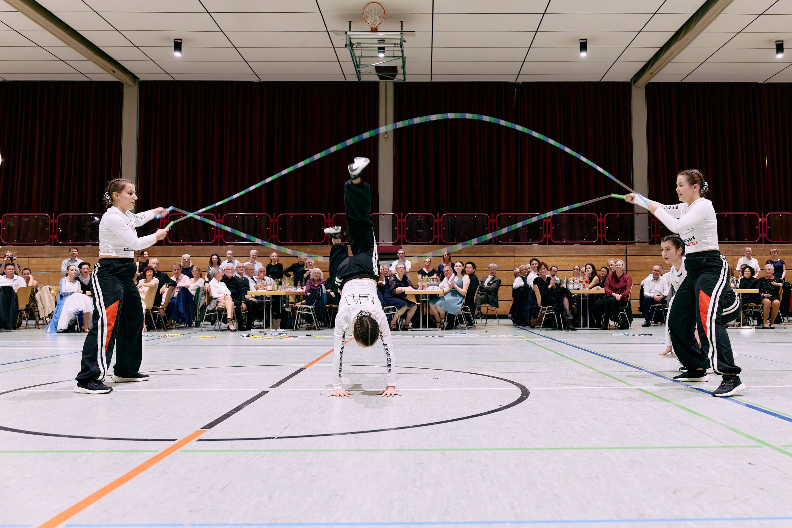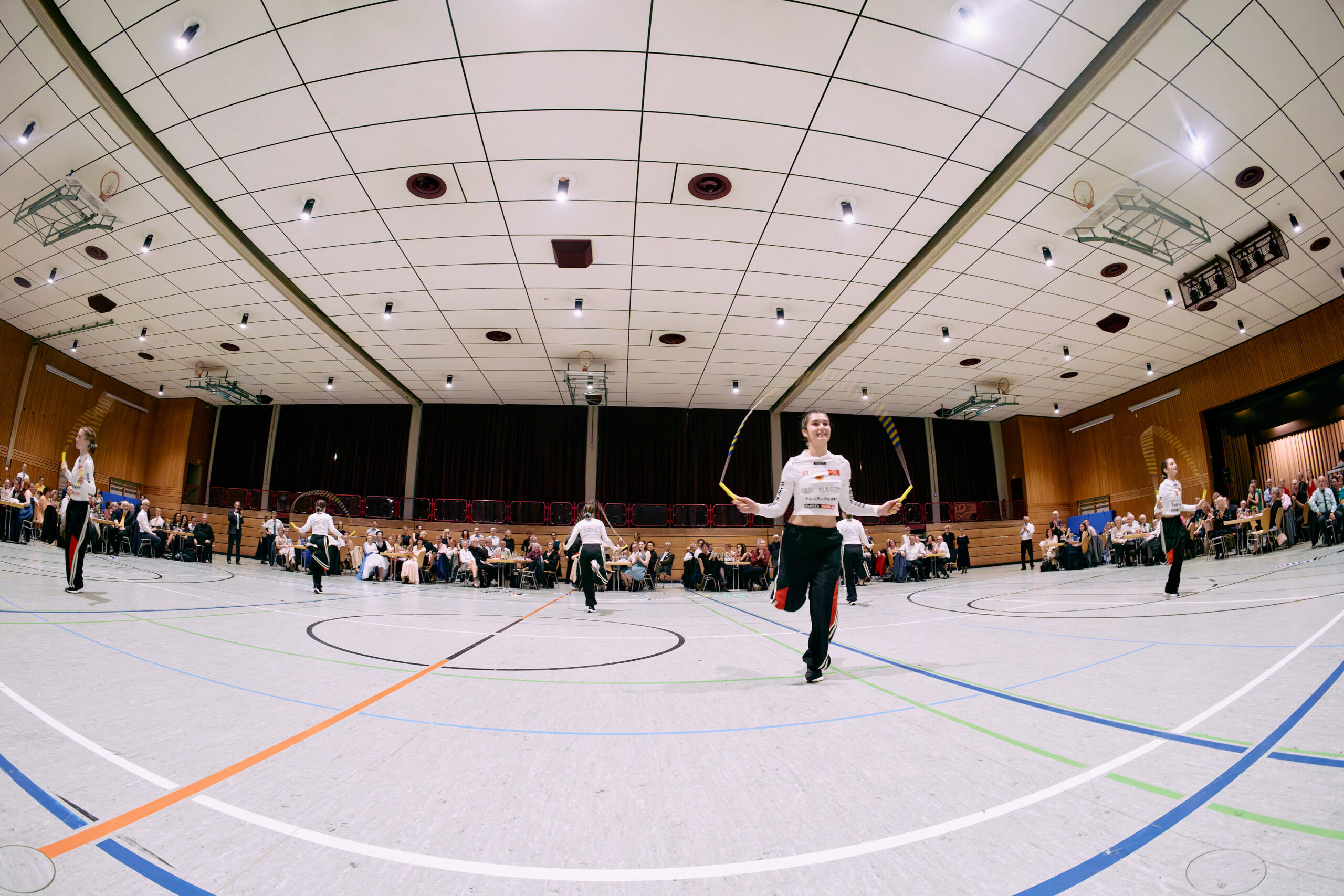 Rasant, energiegeladen und absolut atemberaubend wurde es dann mit der Showgruppe der „Sparkling Skippers“ von der Turnergemeinschaft Germersheim. Ihre Darbietung voller Sprünge, Seilschwünge und akrobatischer Präzision brachte die Halle zum Beben und wurde mit begeistertem Applaus belohnt.