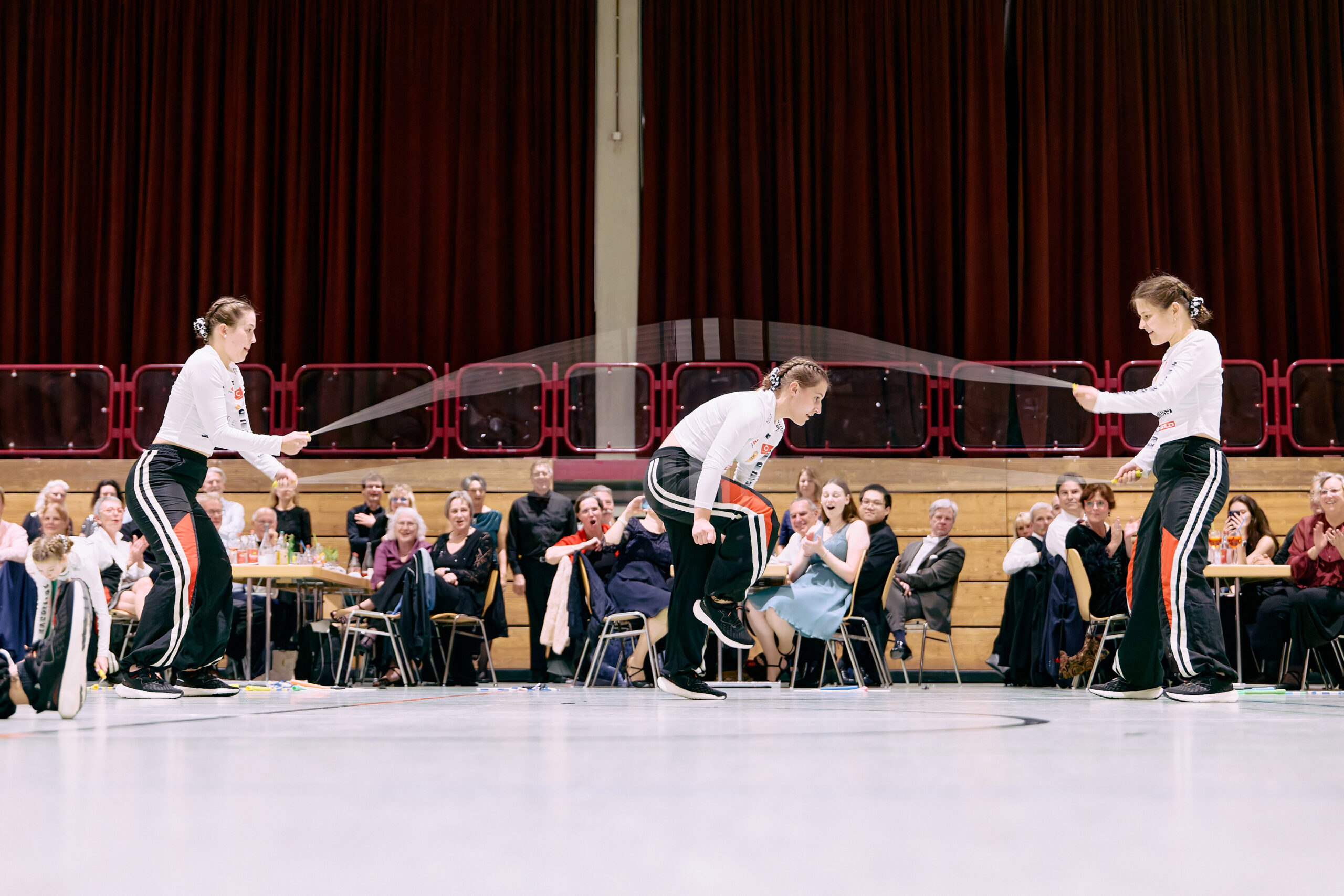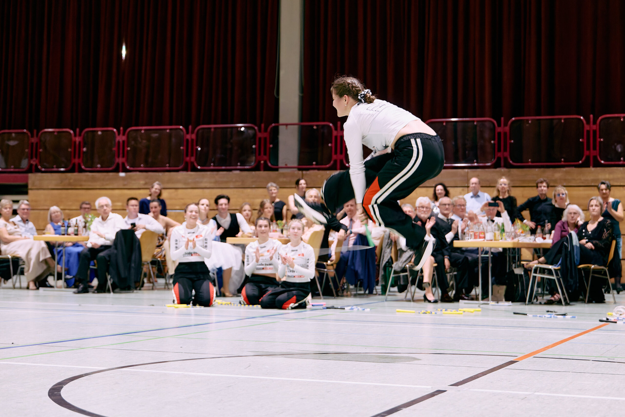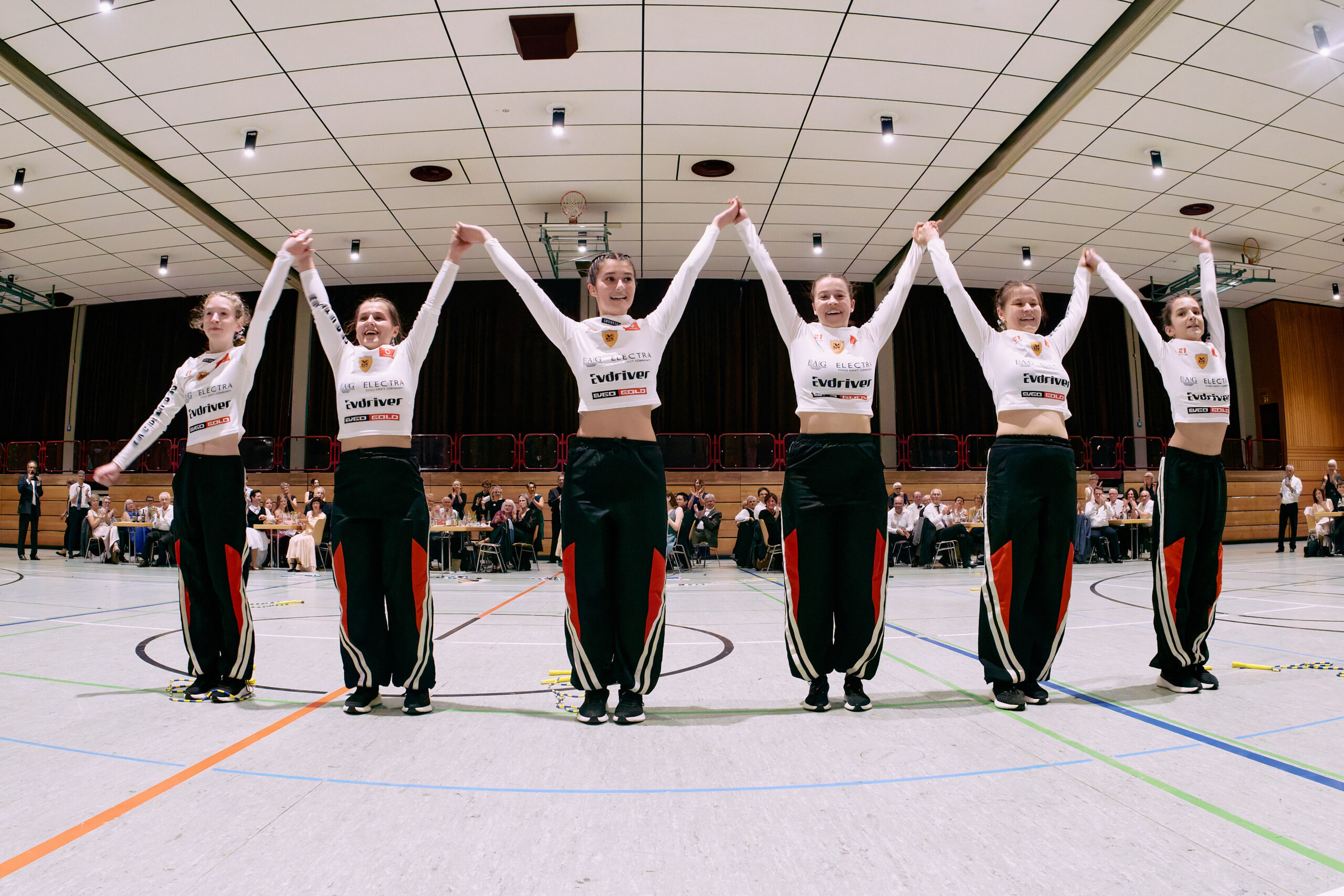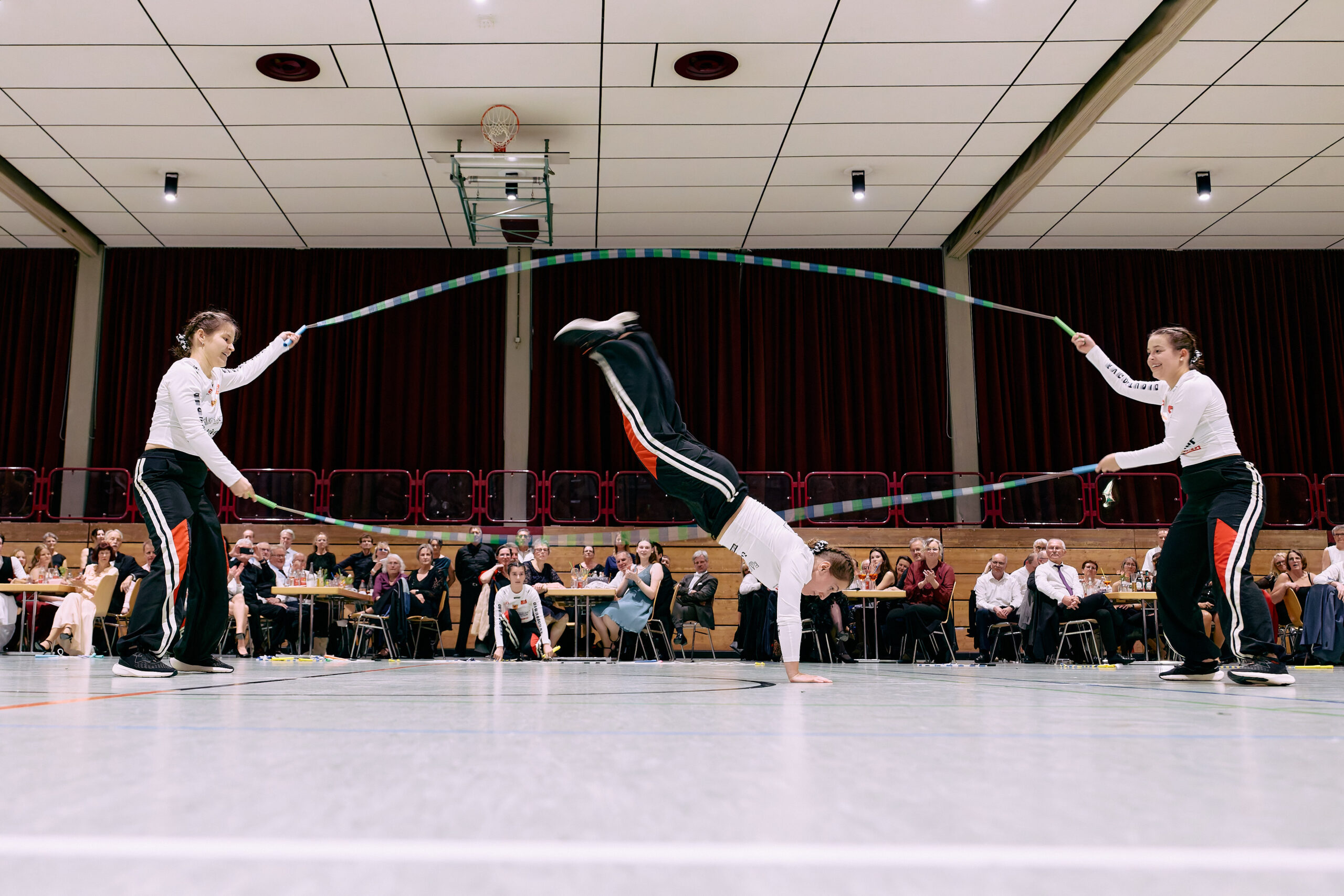 Rasant, energiegeladen und absolut atemberaubend wurde es dann mit der Showgruppe der „Sparkling Skippers“ von der Turnergemeinschaft Germersheim. Ihre Darbietung voller Sprünge, Seilschwünge und akrobatischer Präzision brachte die Halle zum Beben und wurde mit begeistertem Applaus belohnt.