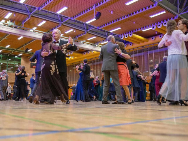 Nach einer weiteren Tanzrunde fand eine Premiere statt: Zum ersten Mal in der Geschichte der Ballnacht konnten die Gäste ein Turnier der besonderen Art erleben. Nicht einzelne Paare traten gegeneinander an, sondern vier Teams mit je drei Paaren unterschiedlicher Alters- und Leistungsklassen. Dabei reichte die Altersspanne von 16 bis 63 Jahren. Das Publikum konnte sich am Tanzen auf hohem Niveau erfreuen. Die Tanzpaare genossen es sichtlich, vor großer Kulisse ihr Können zu zeigen. Am Ende war es ein Foto-Finish – die Nachkommastellen entschieden über die Plätze.