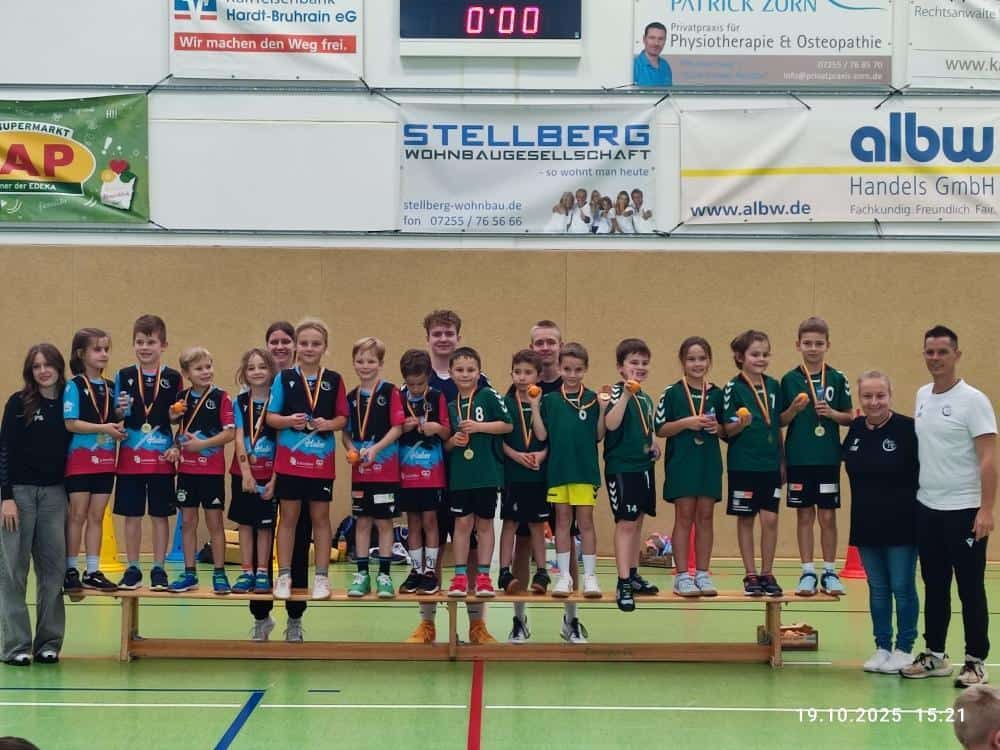In jeweils knapp drei Stunden pro Jugend durften die knapp 120 Kinder an Spielstationen, beim Königshandball (G-Jugend), Funinio (F-Jugend) und auf dem Minihandballfeld ihre im Training erworbenen Fähigkeiten zur Schau stellen. Trotz der Aufteilung in drei Mannschaften konnten unsere Graben-Neudorfer Handballkinder allen angereisten Mannschaften kräftig Paroli bieten und vor allem durch das tolle Zusammenspiel innerhalb der Mannschaften glänzen.