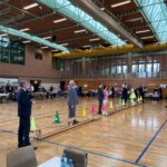 Samstagmorgen kurz vor 10:00 Uhr. Die Paare der ersten Turniere stehen bereit. Getanzt wird parallel auf drei Flächen. Die Größe der Pestalozzi-Halle macht dies möglich. Mittlerweile sind auch alle Wertungsrichterinnen und Wertungsrichter eingetroffen – fünf je Fläche.