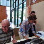 Samstagmorgen 9:00 Uhr. Die ersten Turnierpaare treffen ein, die ersten Startnummern kommen aus dem Drucker. Auf der Bühne konzentrierte Blicke in die Monitore. Die „Digis“, die digitalen Endgeräte, mit denen die Wertungsrichter ihre Bewertungen erfassen und drahtlos an den Zentralrechner übermitteln, werden gecheckt. Daumen hoch.