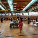 Samstagmorgen kurz vor 10:00 Uhr. Noch sind die Temperaturen in der Halle angenehm. Die Paare der ersten beiden Turniere stehen bereit. Getanzt wird parallel auf zwei Flächen. Die Größe der Pestalozzi-Halle macht dies möglich. Mittlerweile sind auch alle Wertungsrichterinnen und Wertungsrichter eingetroffen – fünf für jede Fläche.