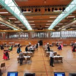 Bereits am Vorabend wird die Halle vorbereitet worden: Tische und Stühle werden gestellt, das beeindruckende Equipment zur Beschallung der Halle wird aufgebaut, die digitale Technik zur Abwicklung der Turniere installiert und getestet.